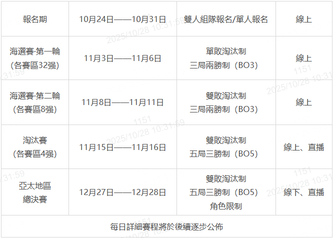 賽程公佈:賽程時間會公佈在官方賽事頁面上,各場次具體參賽時間以公佈的資訊為准,若有疑問可聯系組委會工作人員進行確認